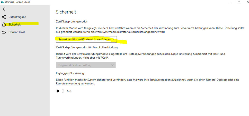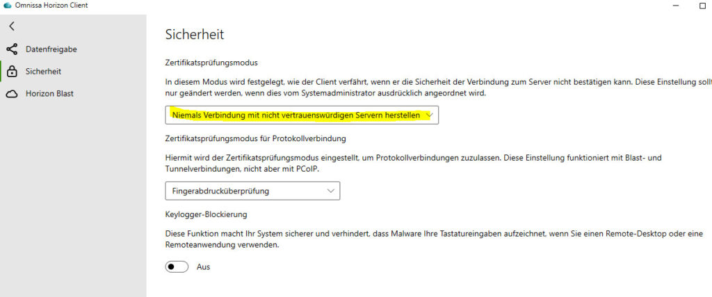 Horizon Client Authentifizierung Tunnelserver Zertifikat