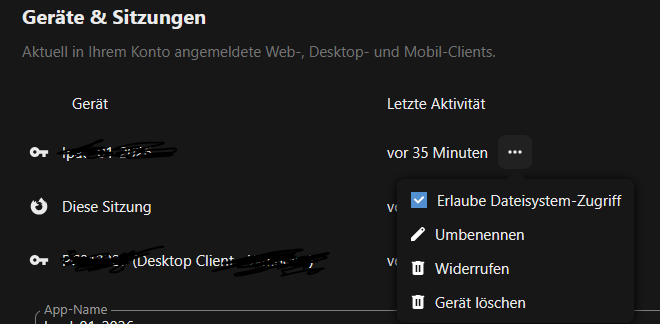 Bitte prüfen Sie dort Klick auf die drei Punkte ob der Haken bei „Erlaubte Dateisystem Zugriff“ vorhanden ist.