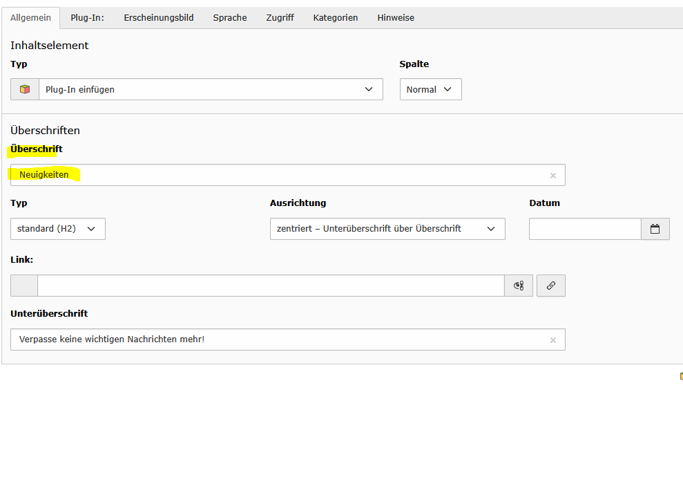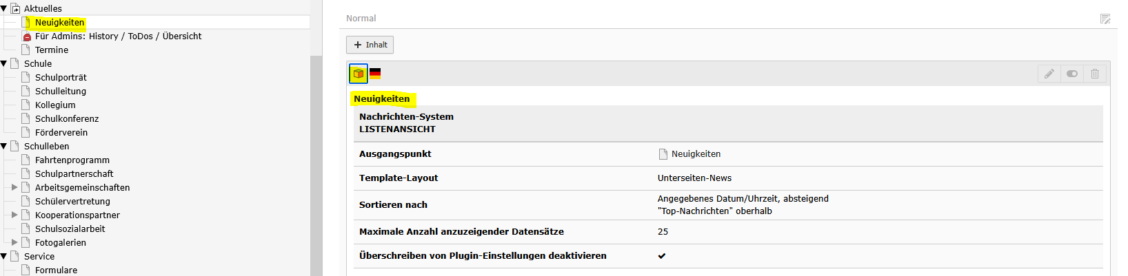 Weiteres Nachrichtensystem in Typo3 anlegen