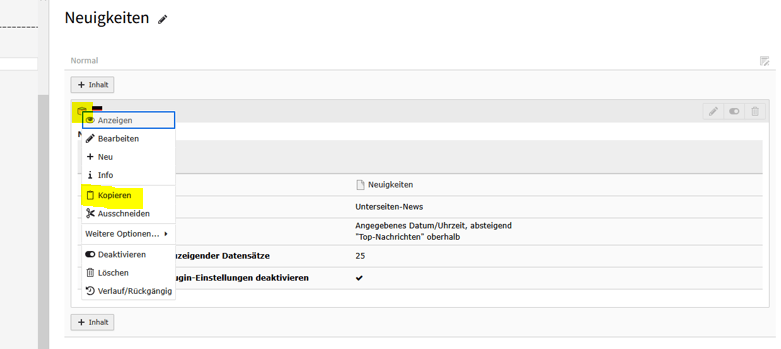 Wenn bereits ein Nachrichtensystem in der Typo3 Instanz existiert kann dieses zunächst einfach in die neue Seite kopiert werden.