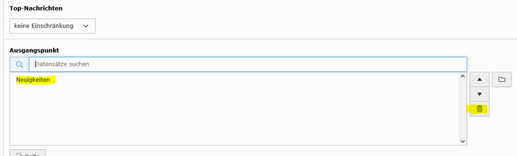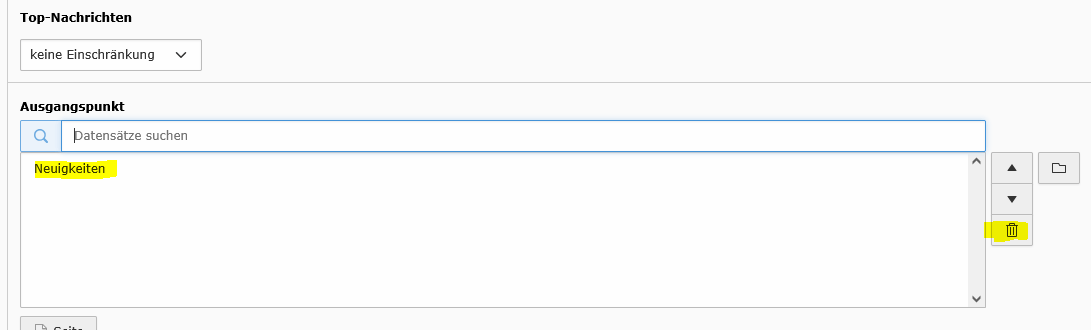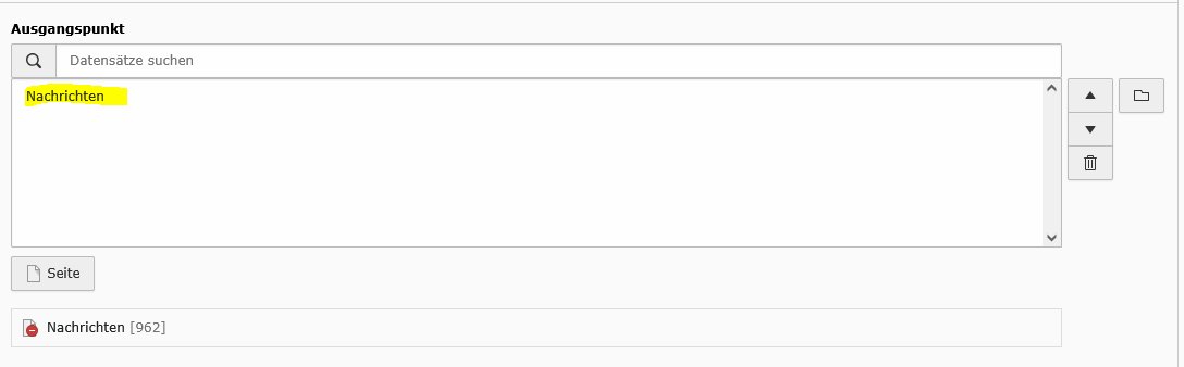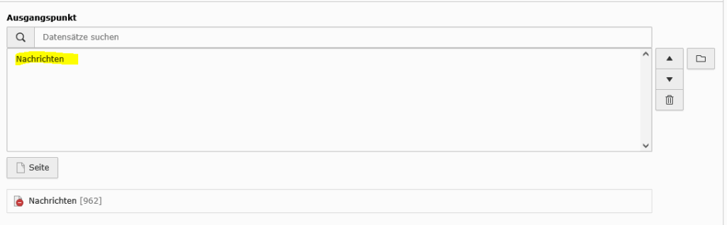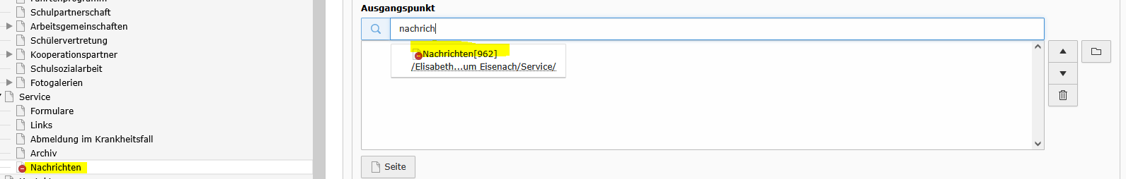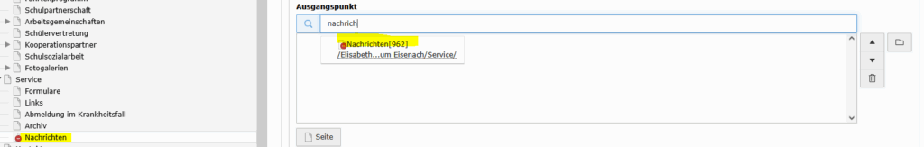 Den Eintrag löschen und über das Symbol Dateiordner die neue Seite (mit dem Nachrichtensystem) oder mit Eingabe des Namen suchen und auswählen.